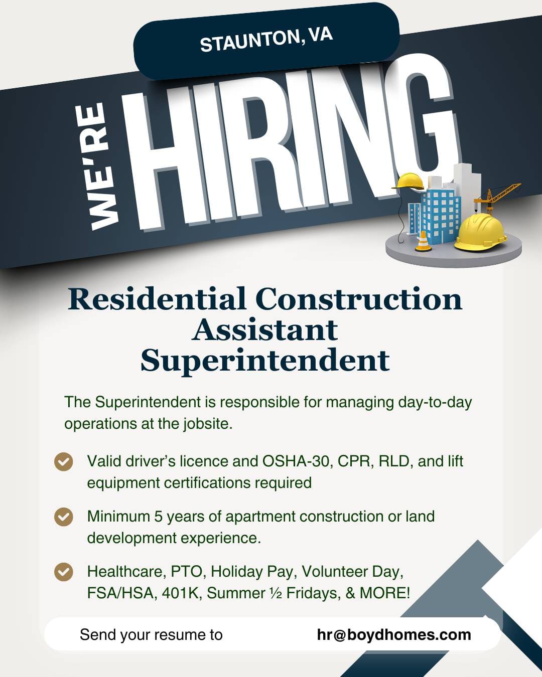Boyd Built LLC, a member of The Boyd Companies, Inc., is seeking an experienced Superintendent to join our growing construction team.