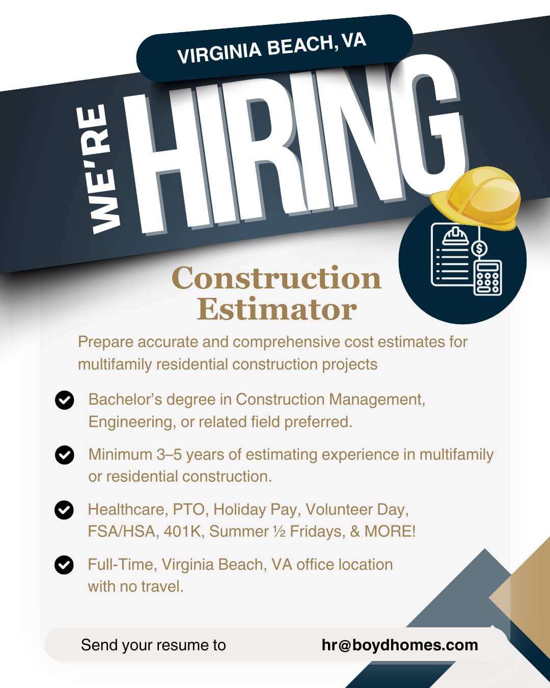 Boyd Built LLC, a member of The Boyd Companies, Inc., is seeking an experienced Multifamily Construction Estimator to join our growing construction team.