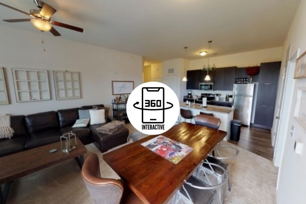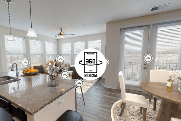 Under “Take A Look Around”, you’ll find interactive 3D floor plans. Click on the 360 logo on the photo to see a decorated version, and the button below the photo to see an unfurnished version. This will open a viewer where you can use your mouse or cursor to move through the apartment as if you were physically inside.