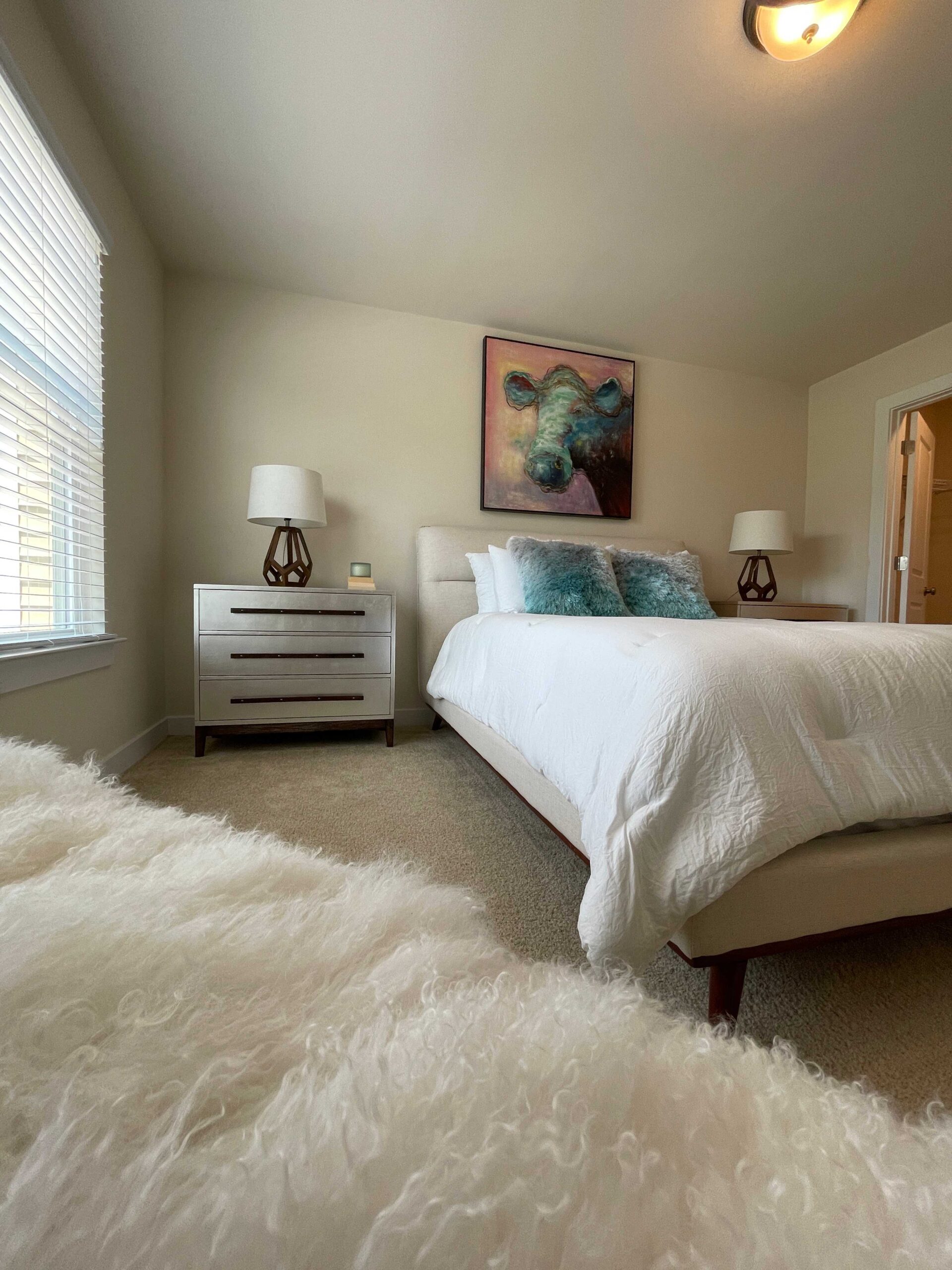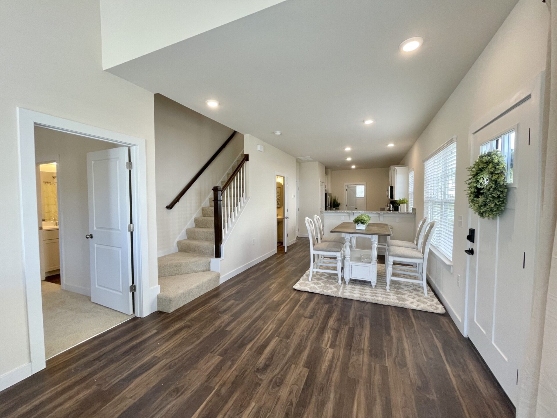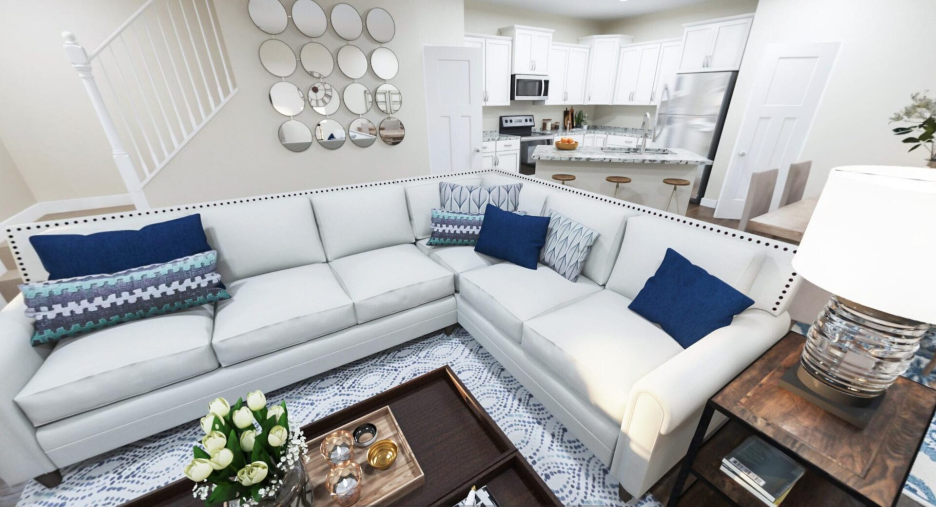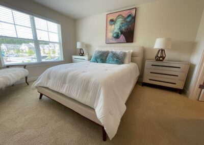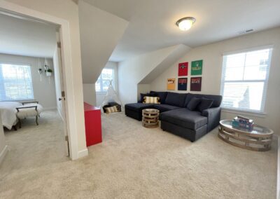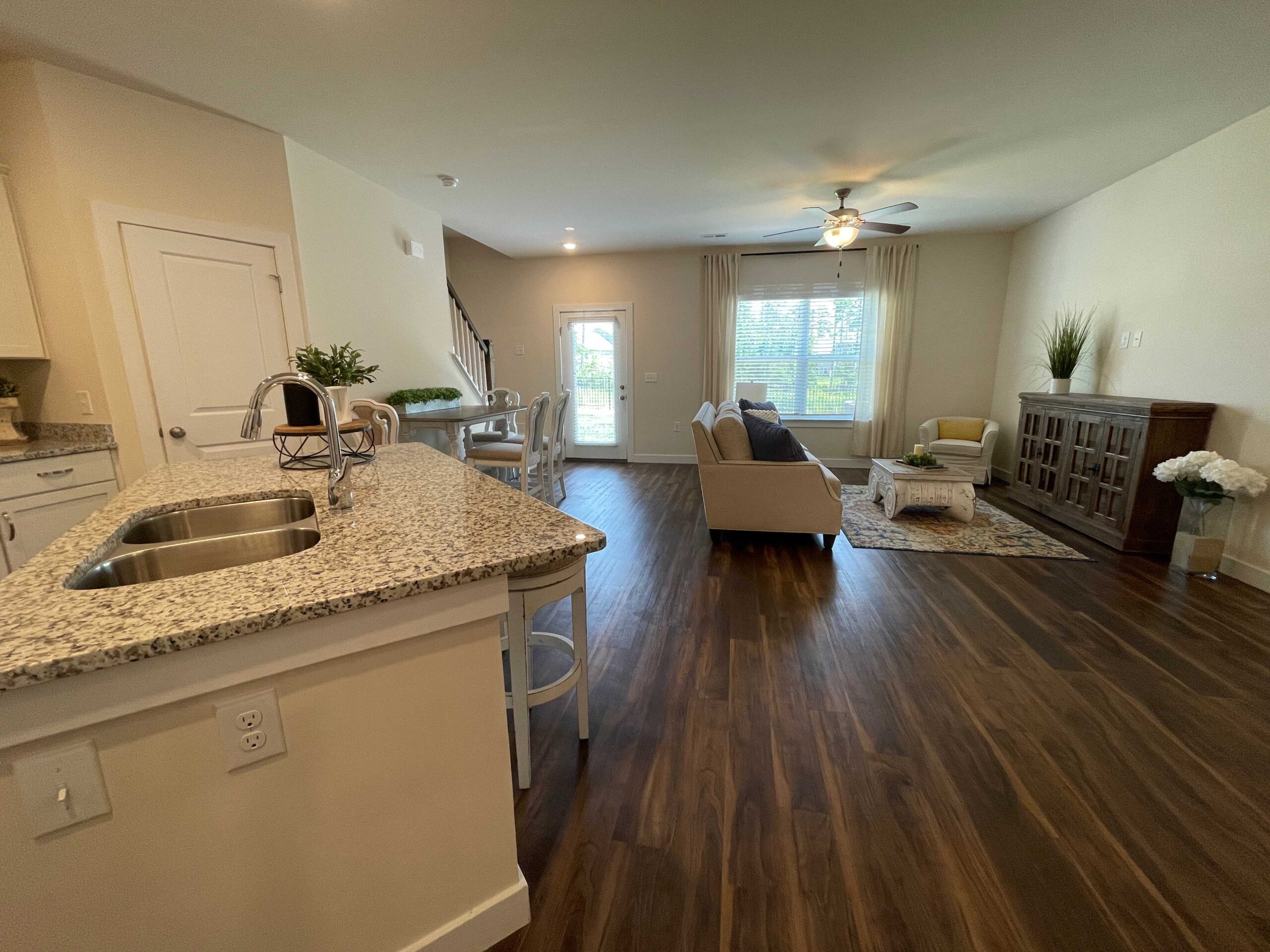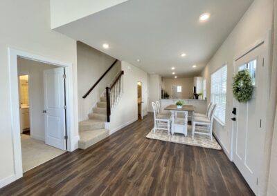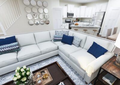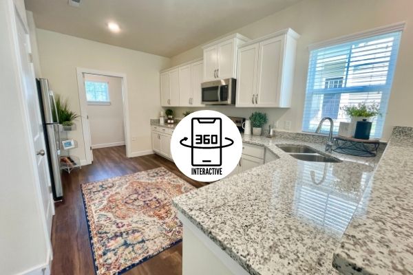 Under “Take A Look Around”, you’ll find interactive 3D floor plans. Click on the 360 logo on the photo to see a decorated version, and the button below the photo to see an unfurnished version. This will open a viewer where you can use your mouse or cursor to move through the townhome as if you were physically inside.
